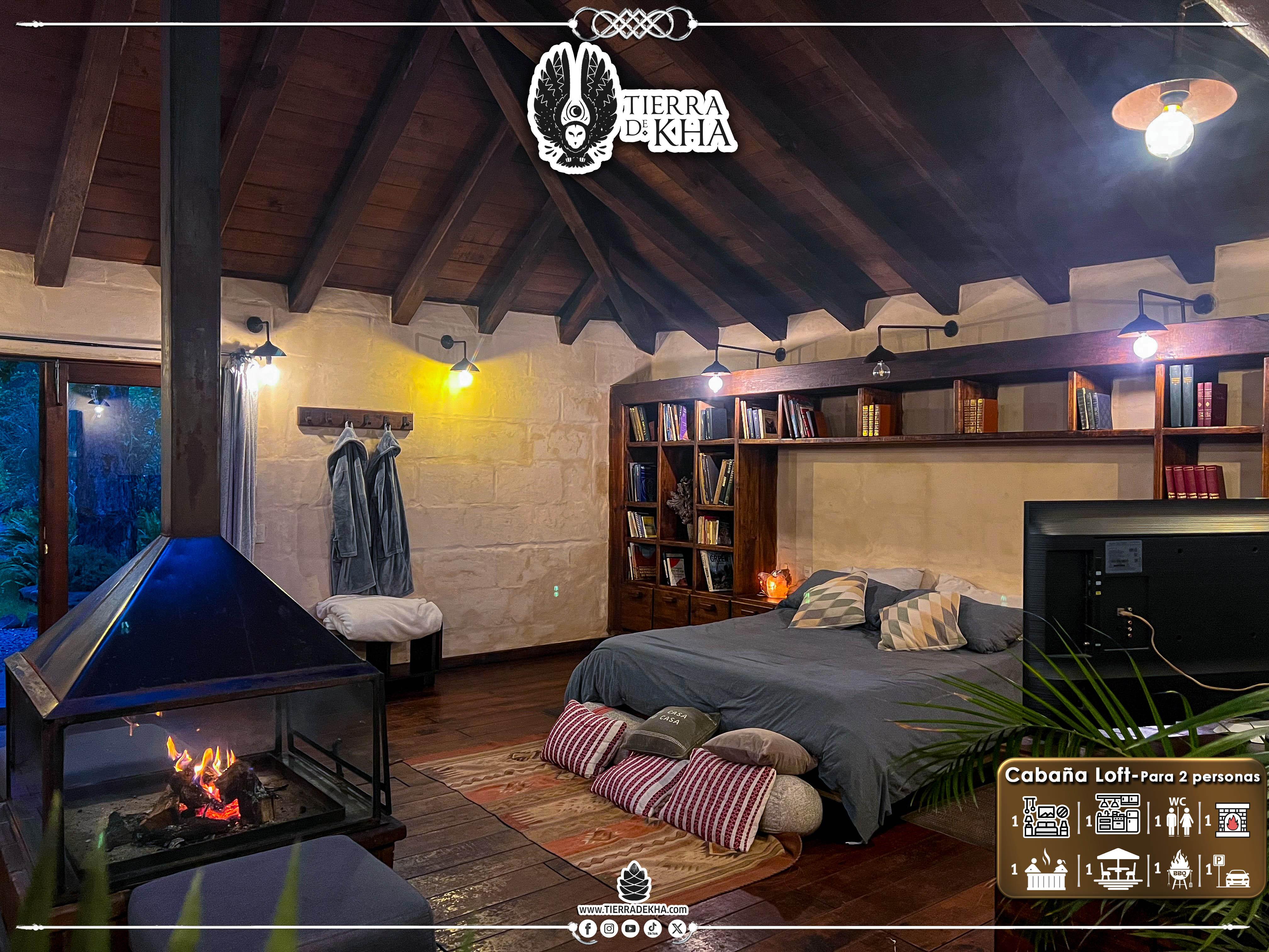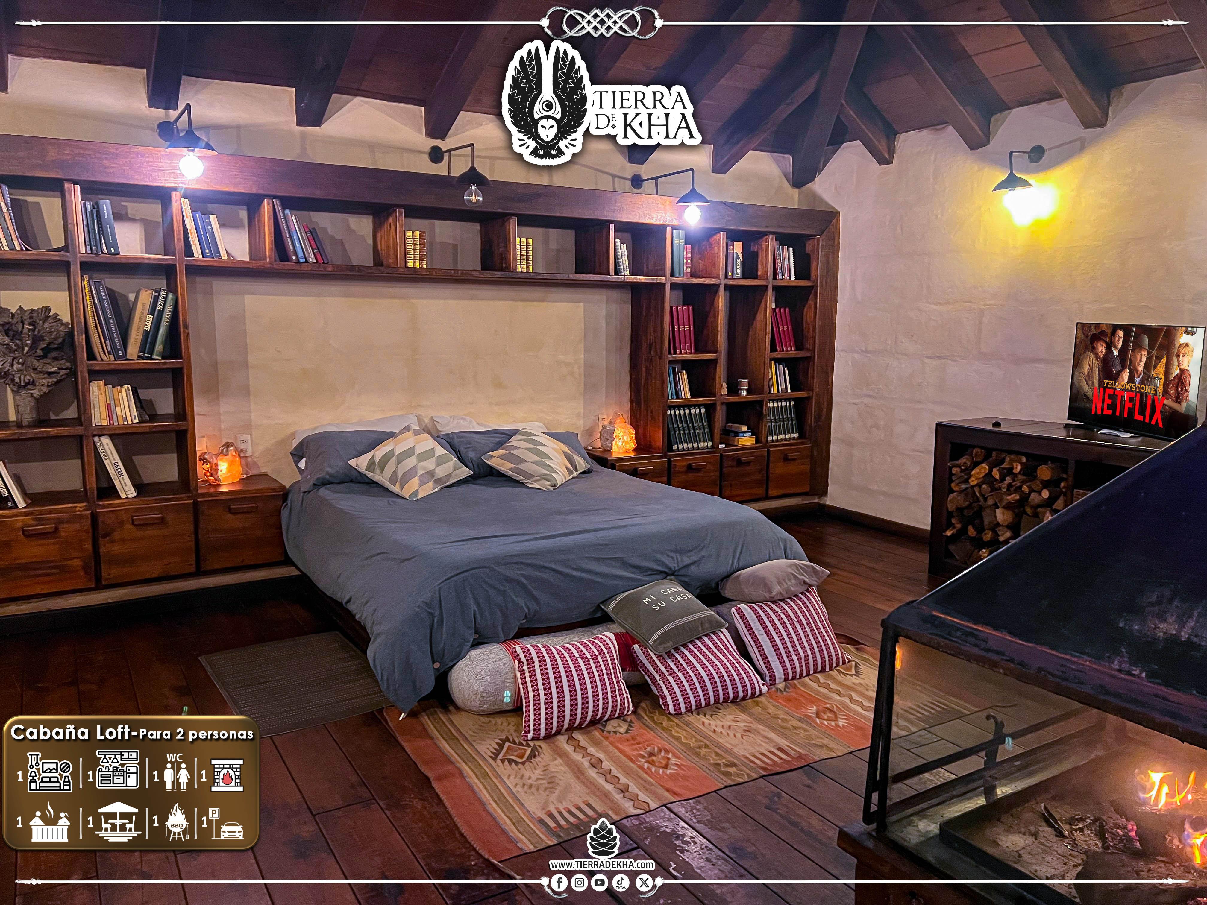- 1 Habitación tipo Loft con cama Queen size, Smart Tv con Netflix y minicomponente.